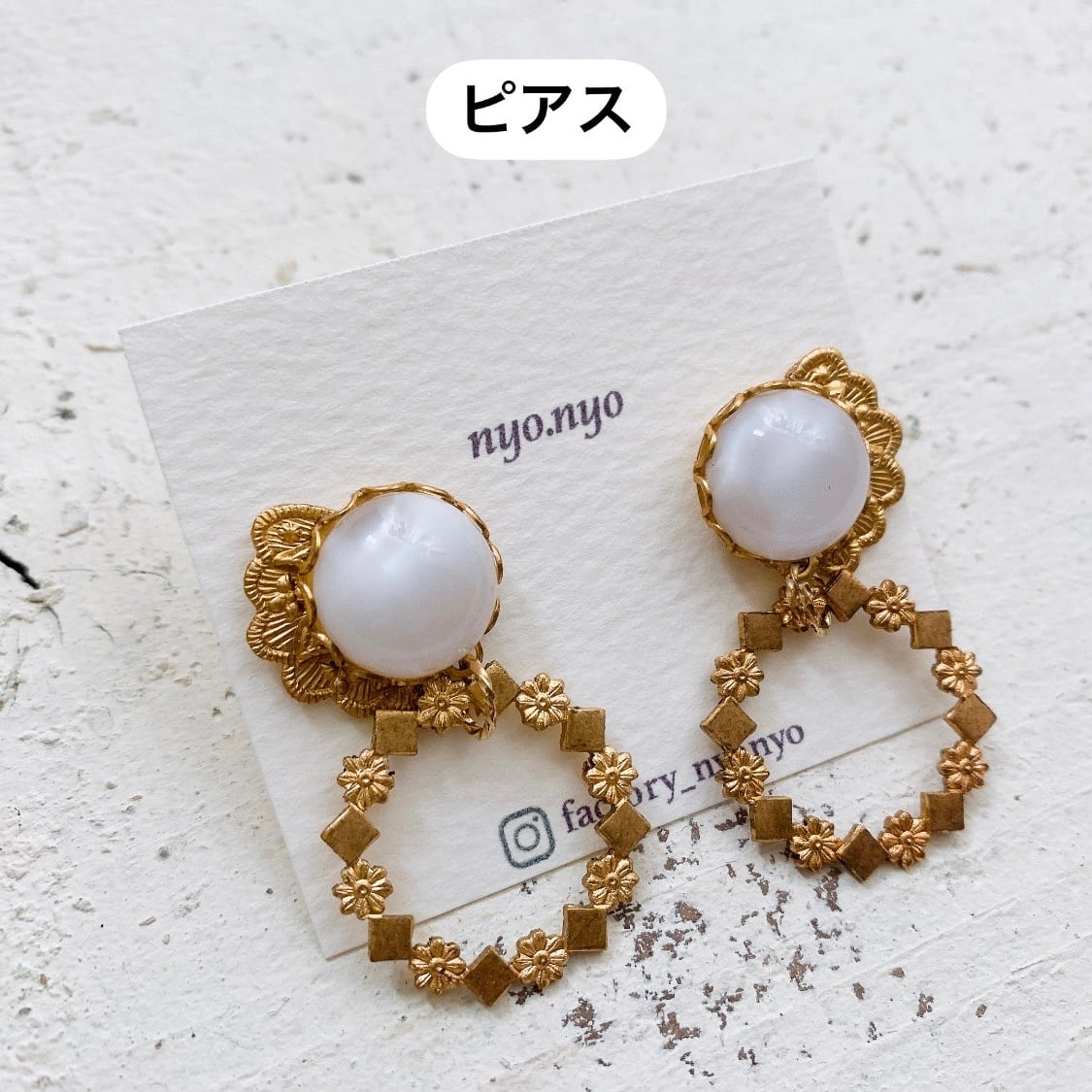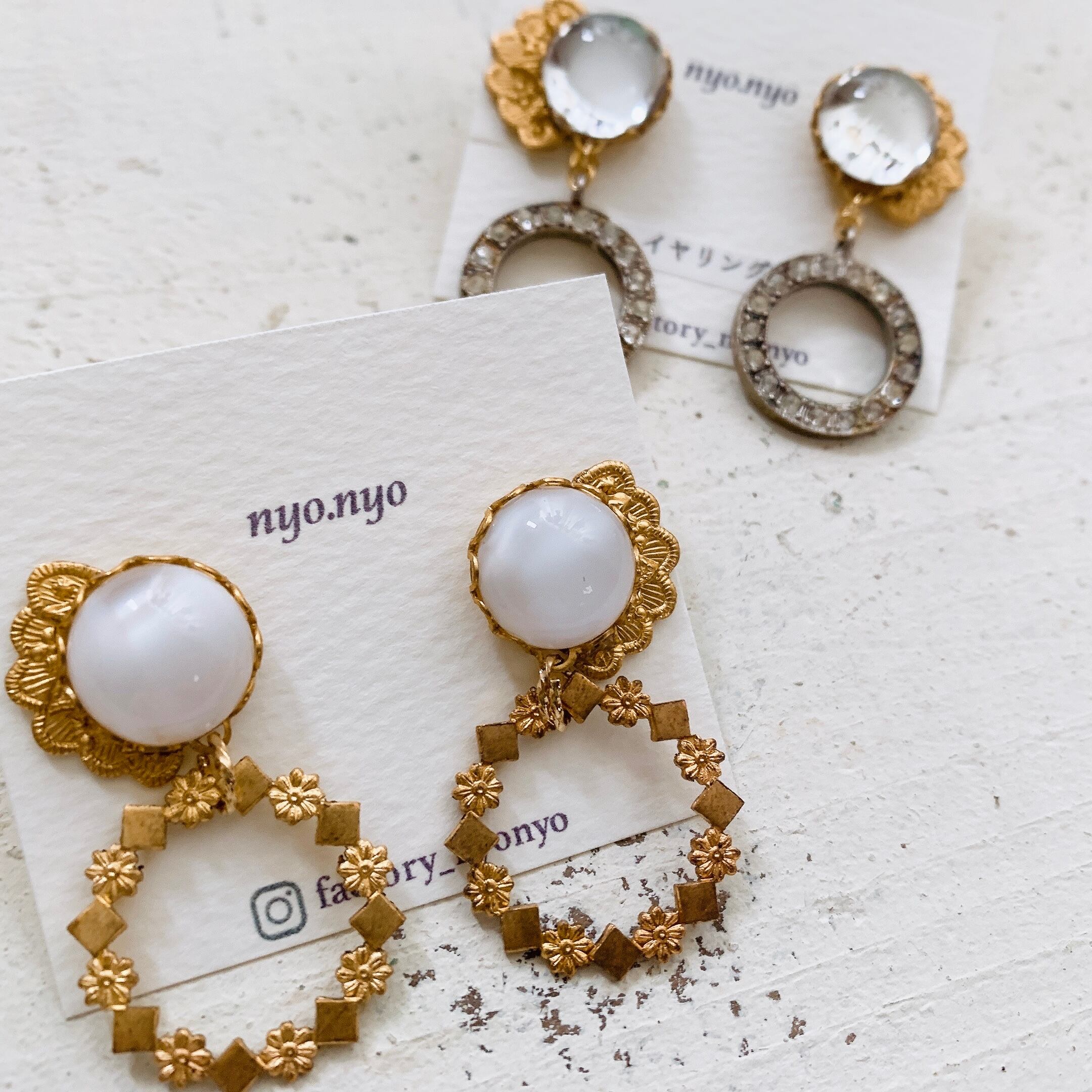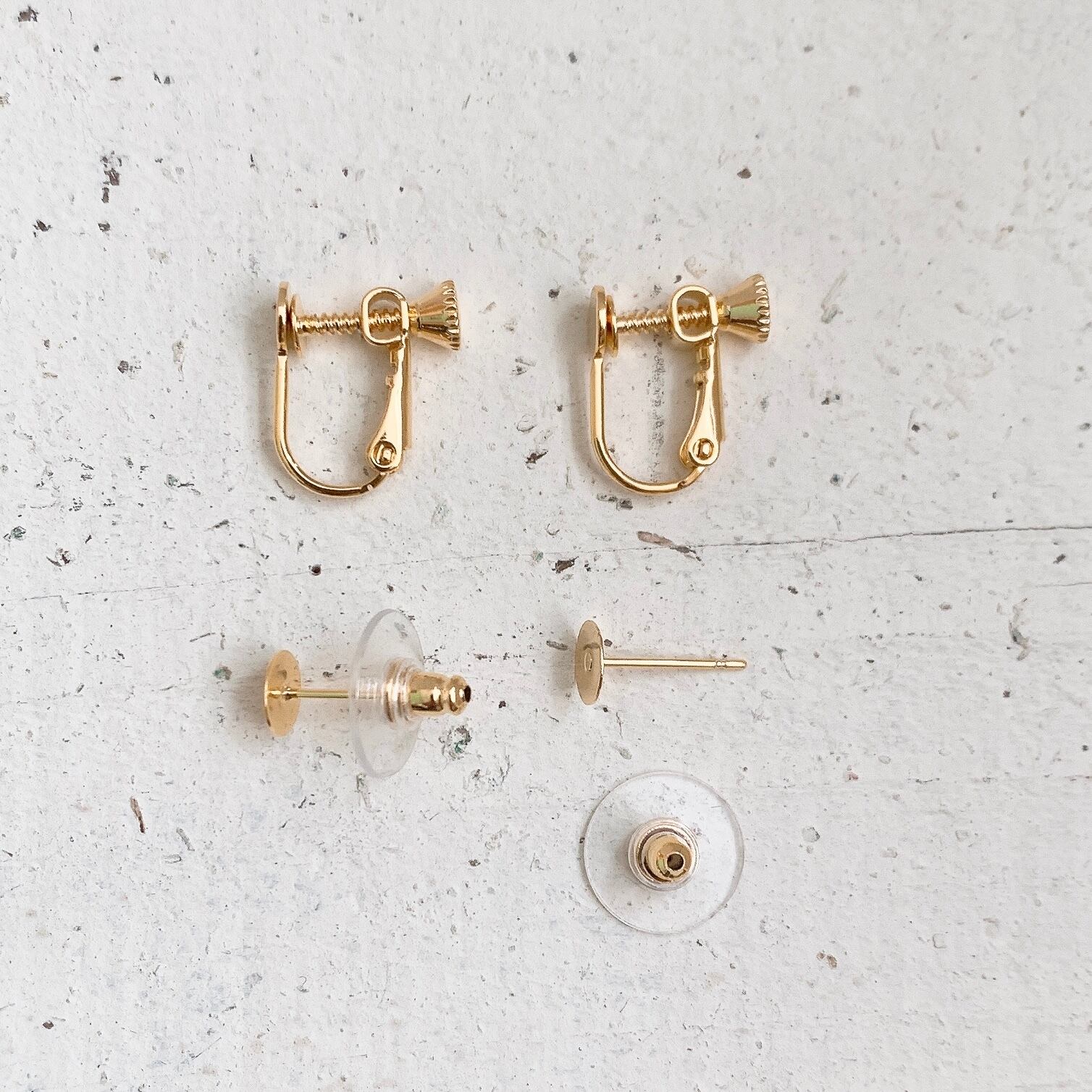 今回はピアス、イヤリング違ったパーツで仕立てています