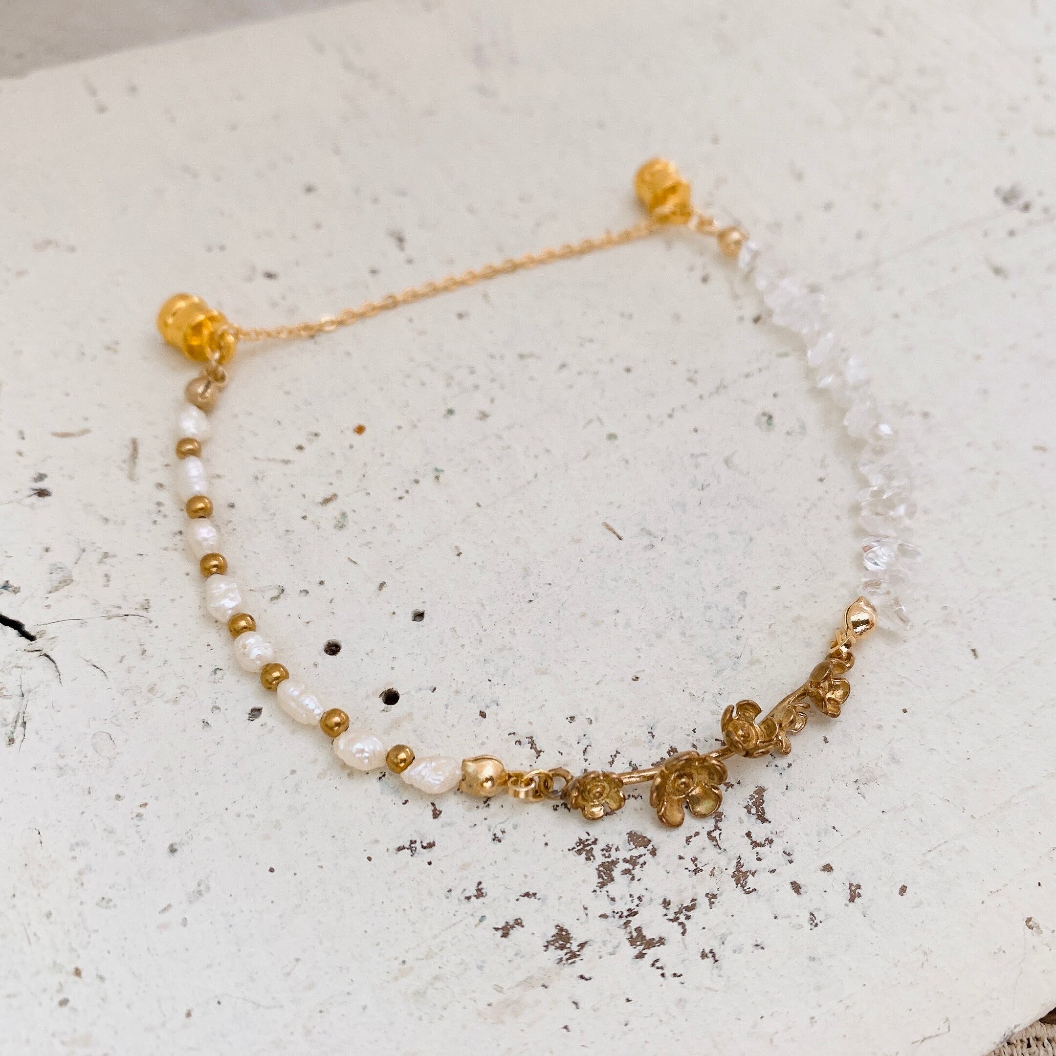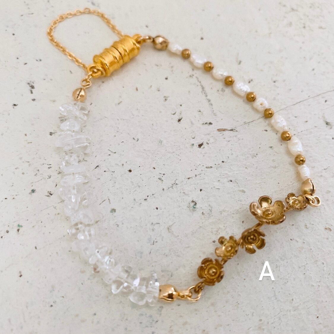 A・・・真鍮パーツ・淡水パール・水晶サザレ・真鍮ビーズ