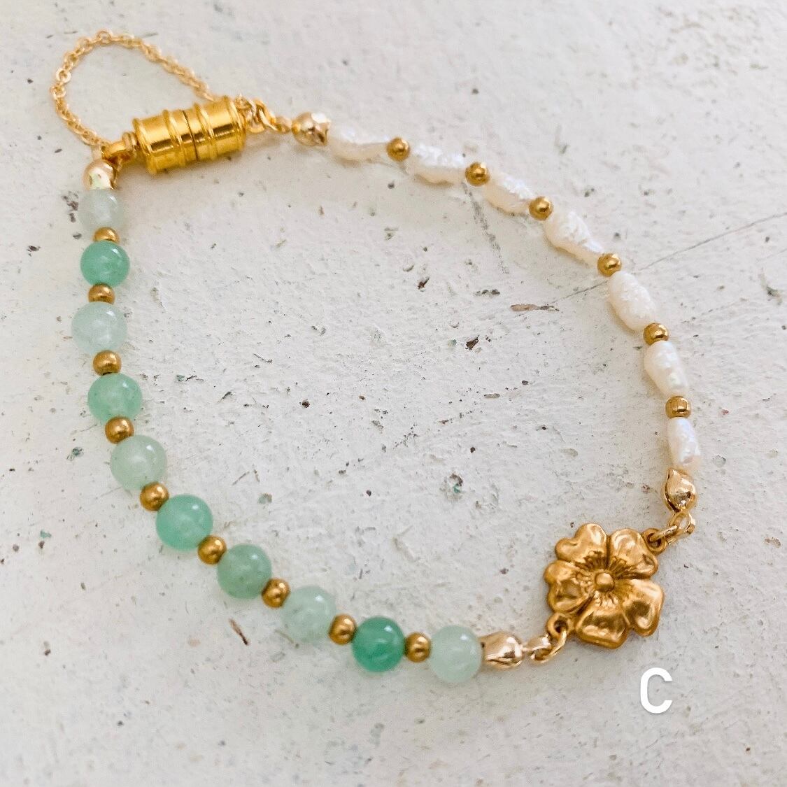 C・・・真鍮パーツ・淡水パール・グリーンアベンチュリン・真鍮ビーズ