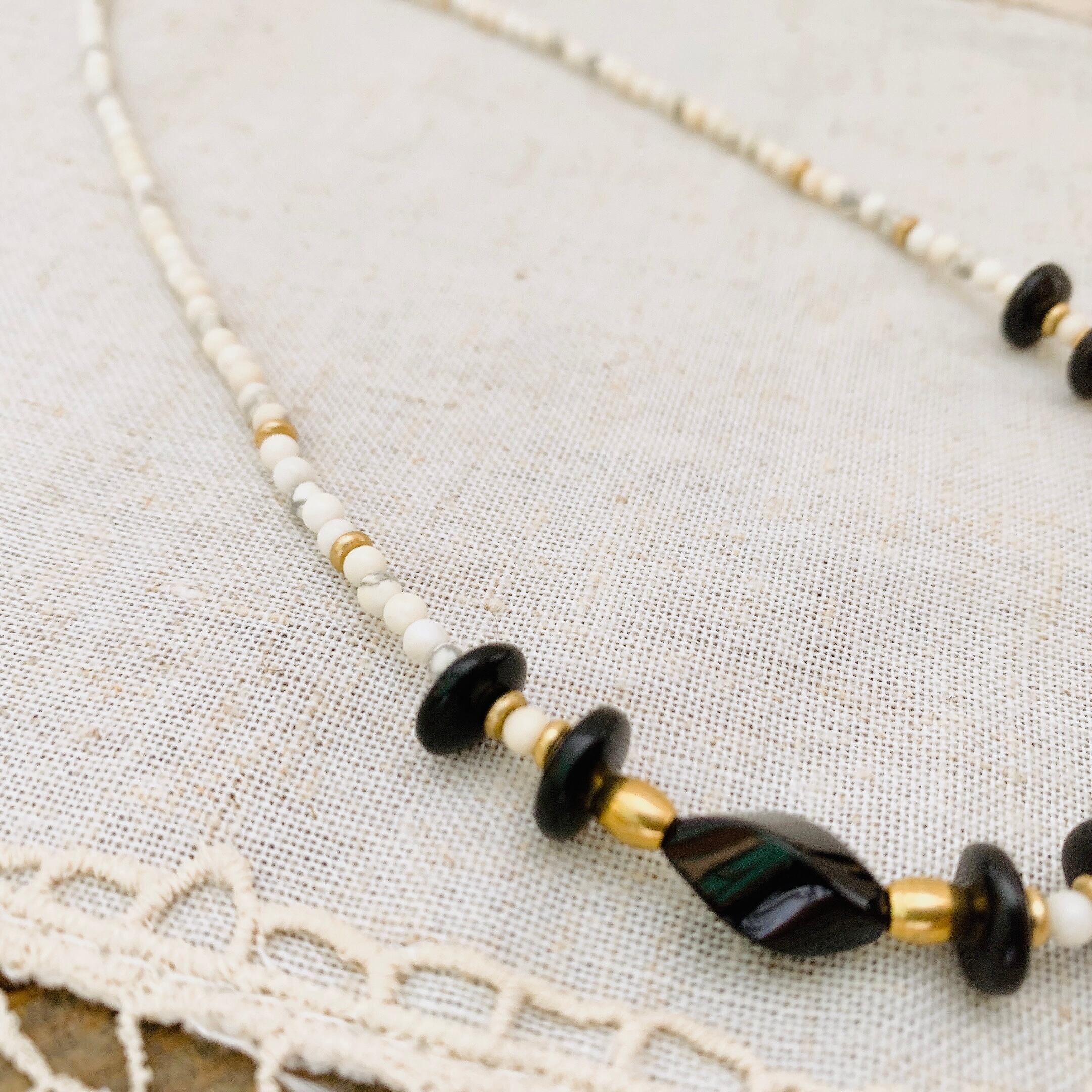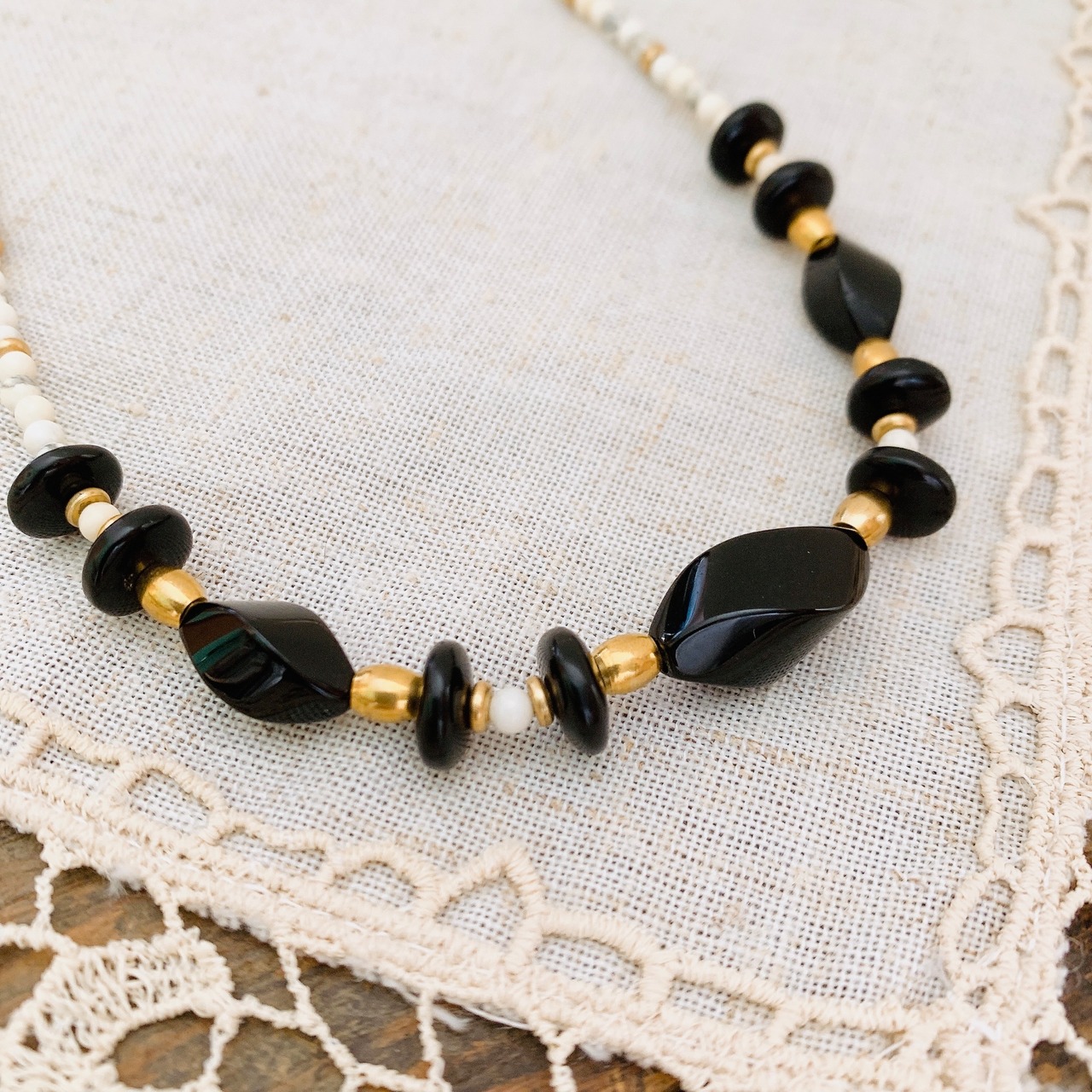 ツヤ感たっぷりのオニキスと真鍮ビーズのネックレス