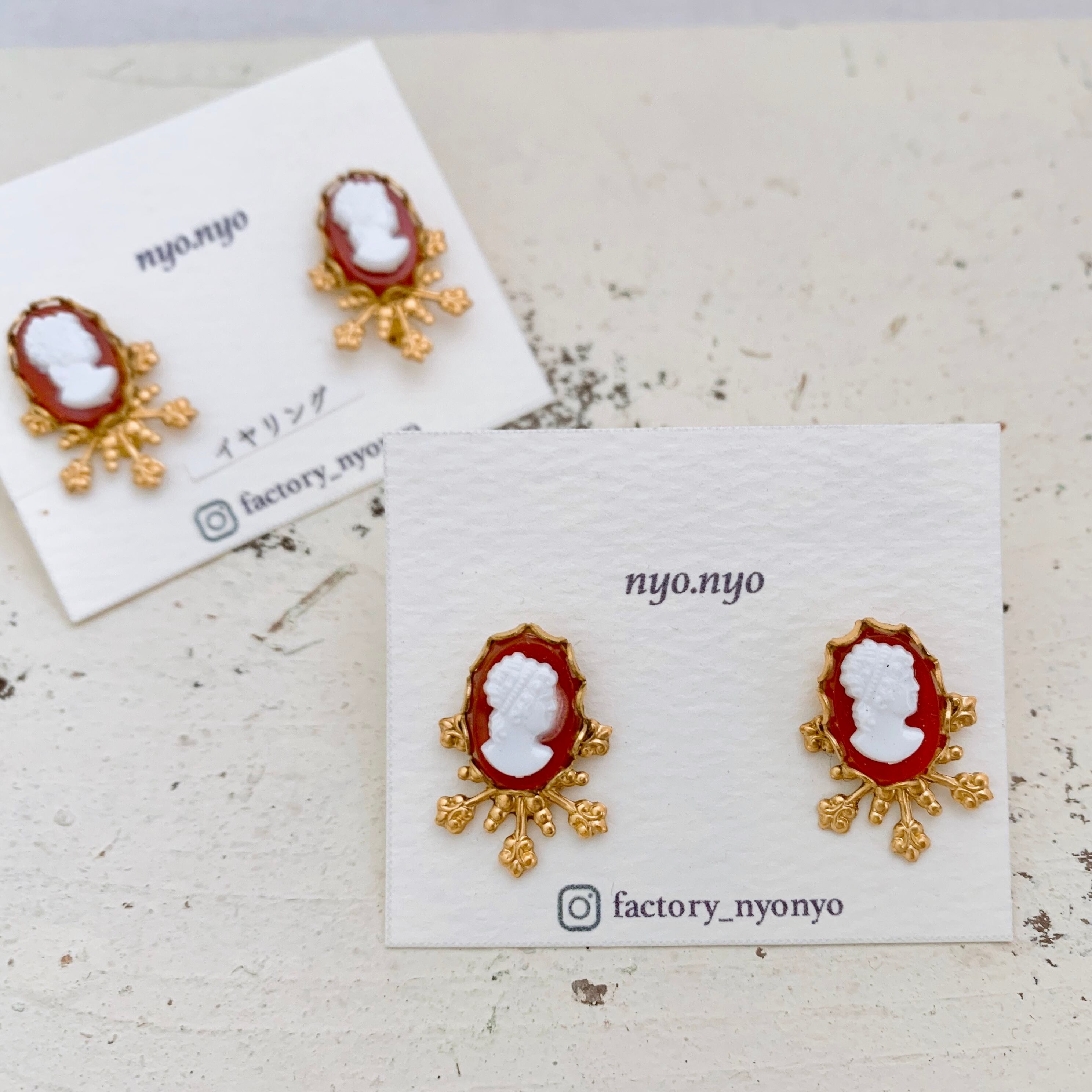 ほんのりとオレンジ味のあるカーネリアンレッドのカメオカボションはジャーマンヴィンテージの物