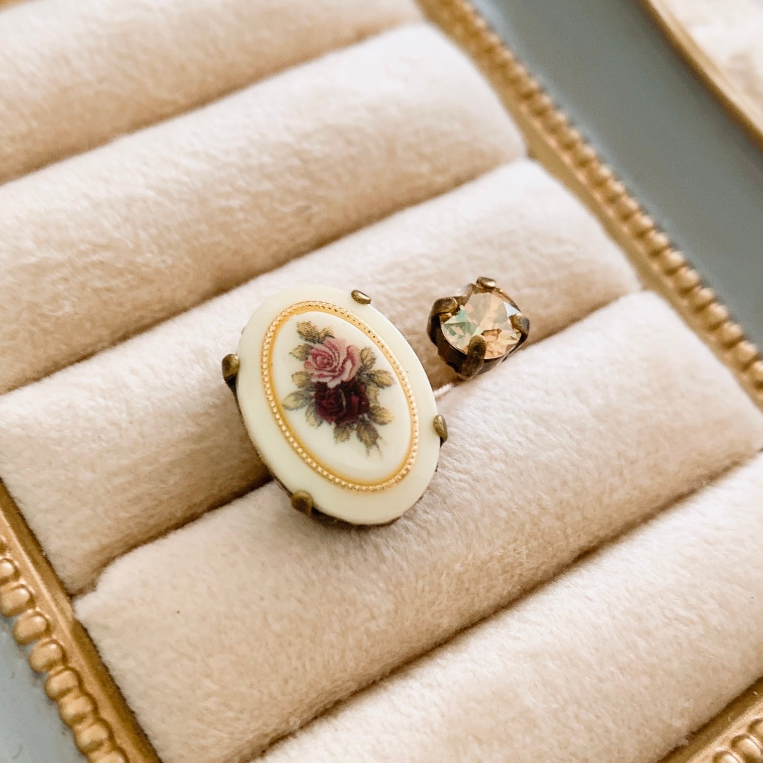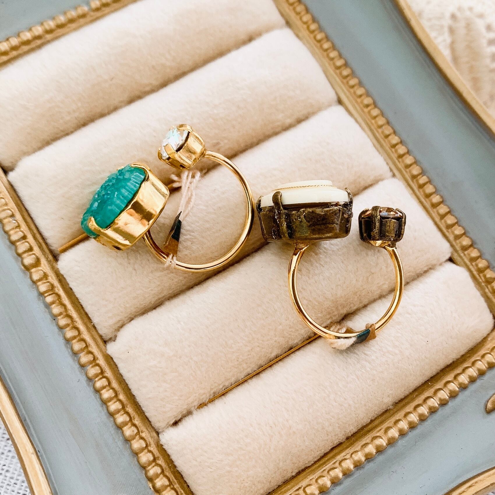 それぞれ美しく個性的なカボションにスワロフスキーのストーンを合わせています